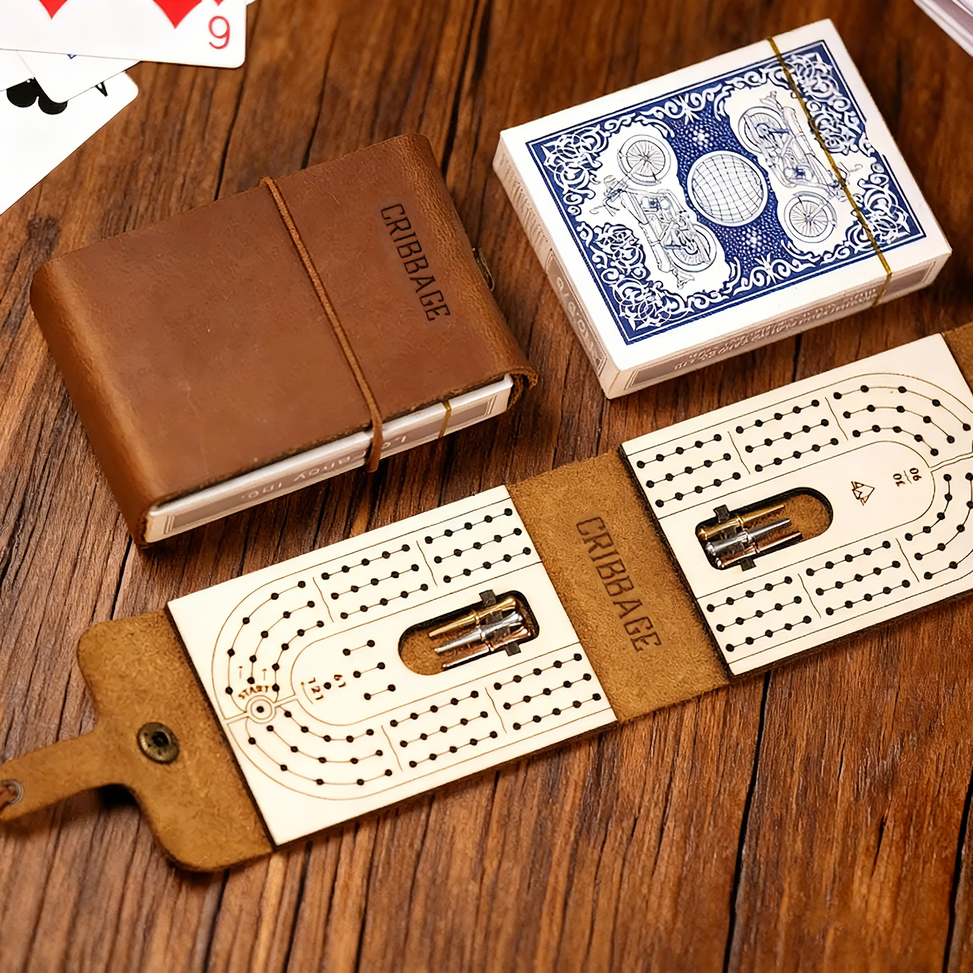 The Cribbage Board is a very compact full 121 point 3 track Cribbage board that folds up to carry a standard deck of cards. This board is designed for avid Cribbage players who have to carry their board with them and for travelers who have to always think about reducing accessories when on the go.
